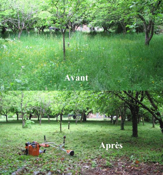 Je dispose d'une débroussailleuse avec 2 batteries à dos AP sthil. Selon les cas, je peux installer un rotofile ou un couteau à herbe qui permet de faucher les terrains, talus et aussi de débroussailler des ronciers.