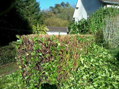Je pratique la taille des haies variées (buddleia, fusain, photinia, etc) au sécateur électrique et à la scie arboricole.